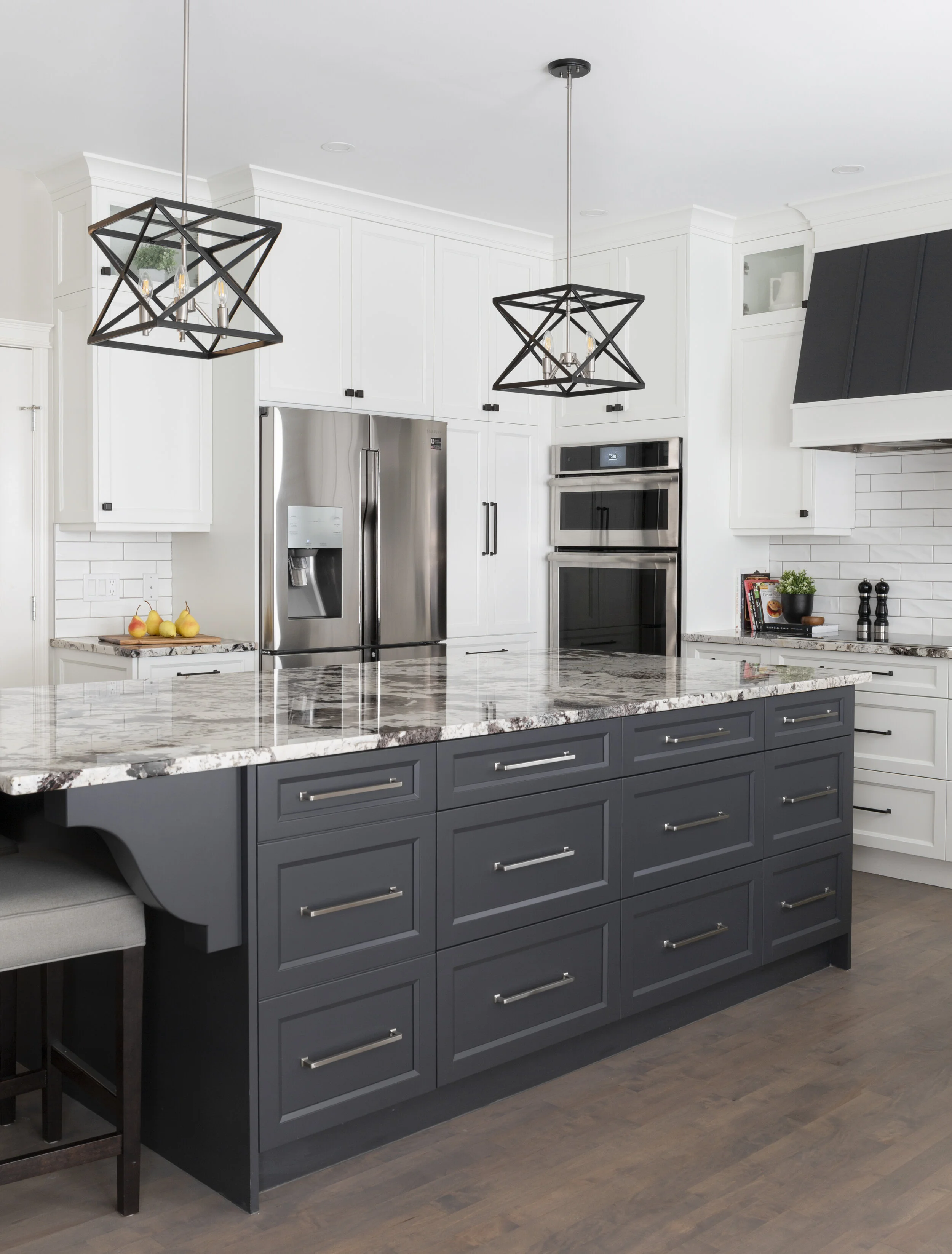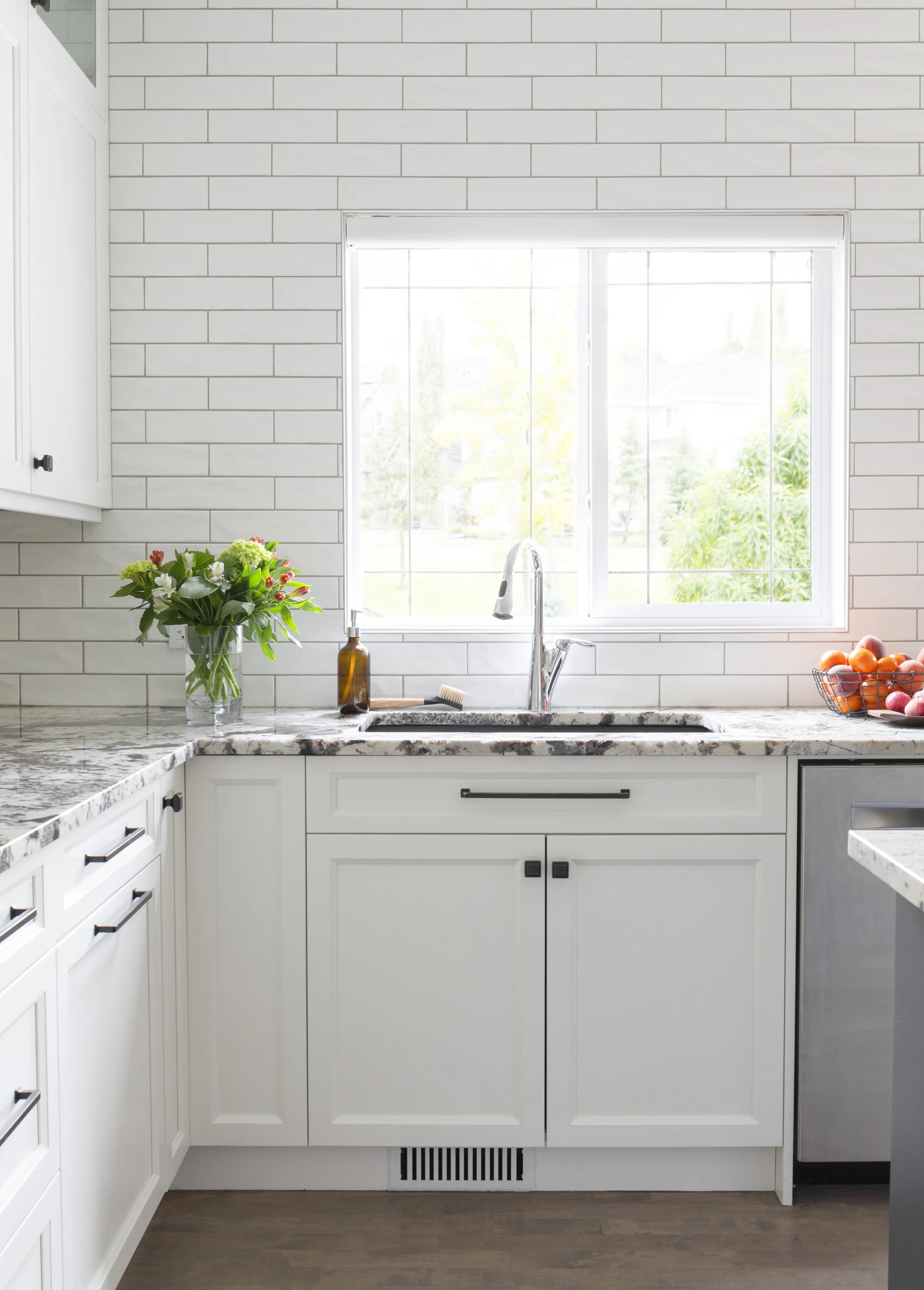 These homeowners told us they were so in love with some of the details in our Springbank Hill renovation that they wanted to see a couple of them in their own home - so we obliged! It was an honour to know that we nailed the design on the original so perfectly that another family would want to bring a similar version of it into their own home. In the kitchen, we knocked out the triangular island and the pantry to make way for a better layout with even more storage space for this young family. A fresh laundry room with ample cabinetry and a serene ensuite with a show-stopping black tub also brought a new look to what was once a dark and dated builder grade home.